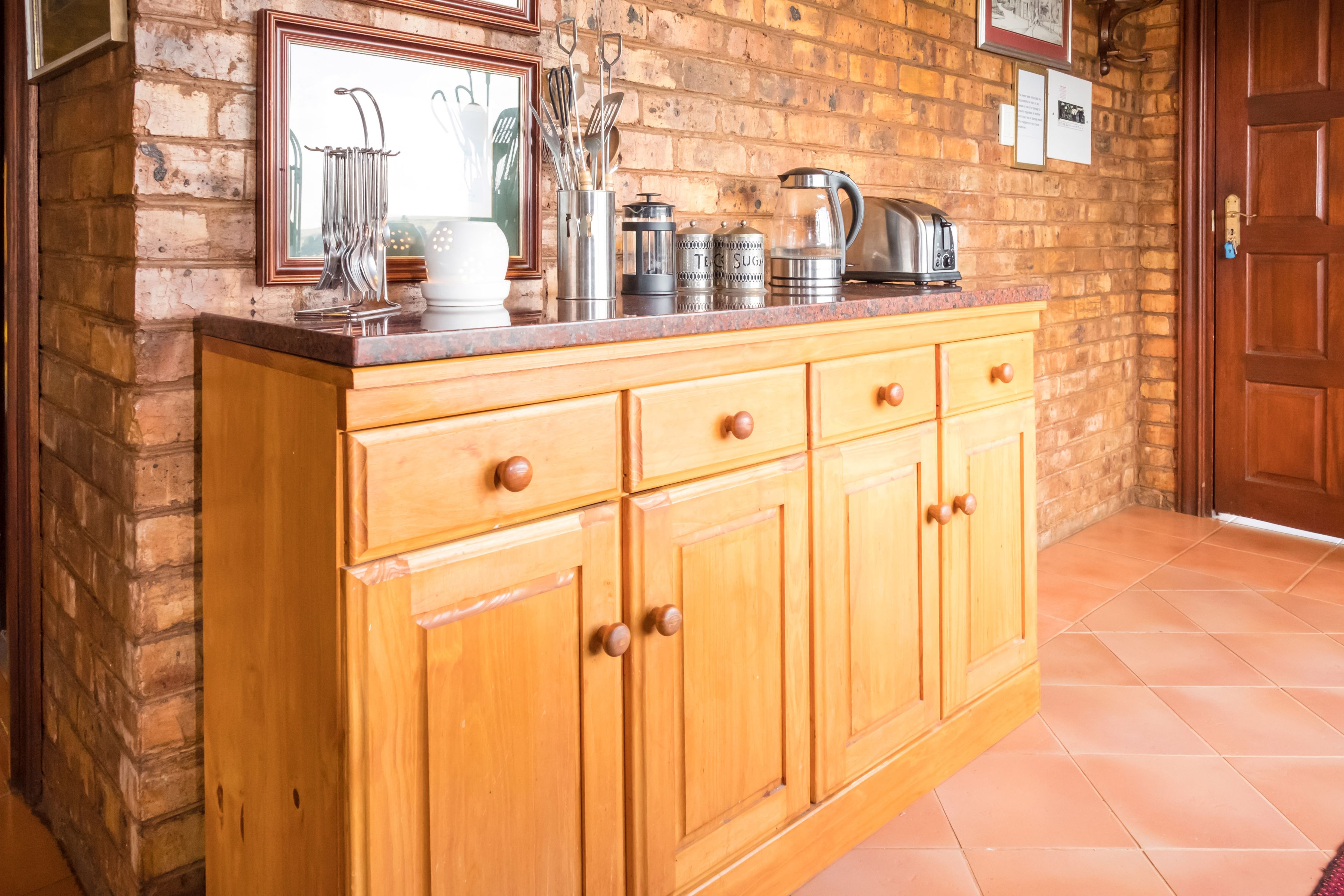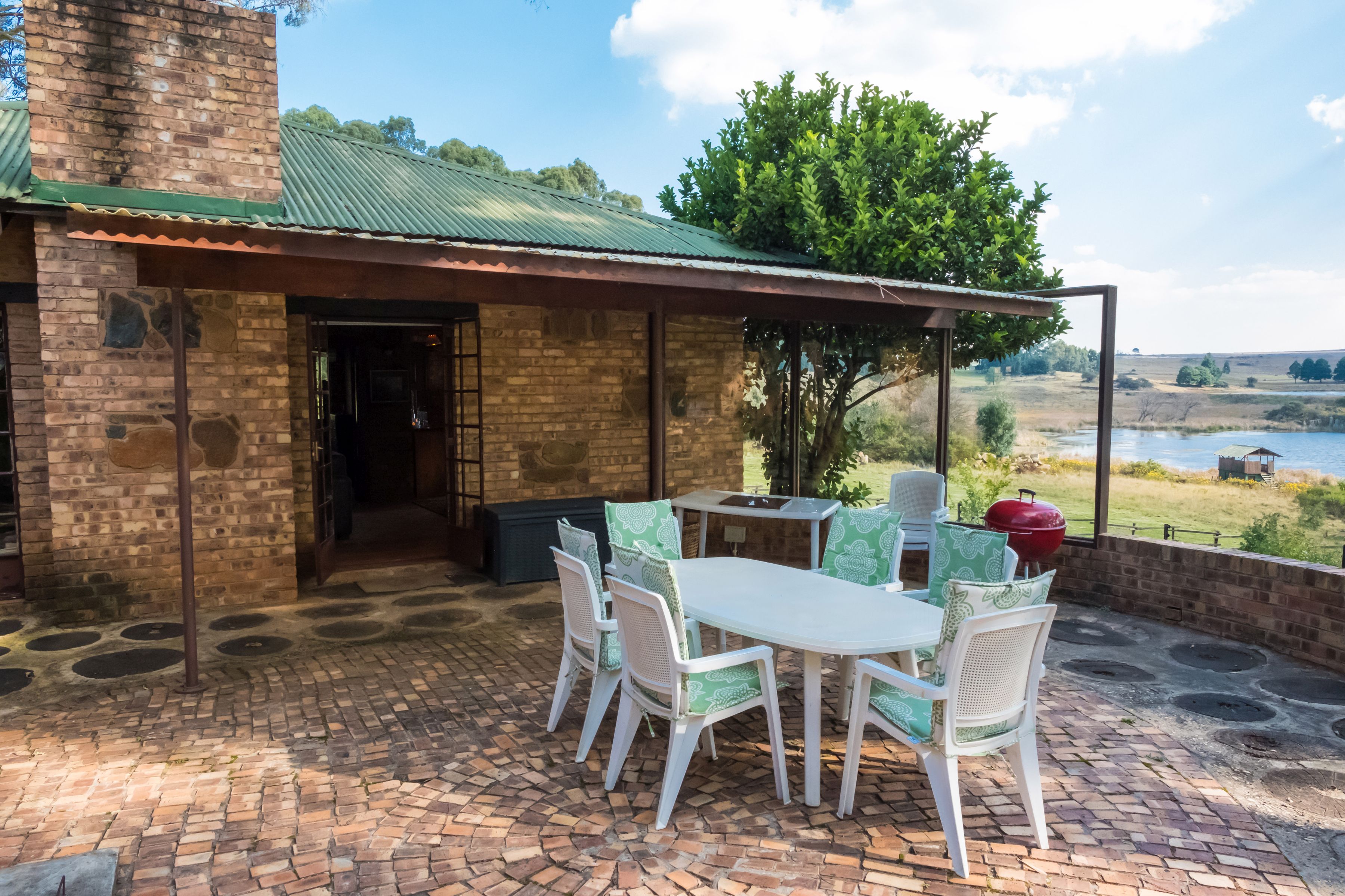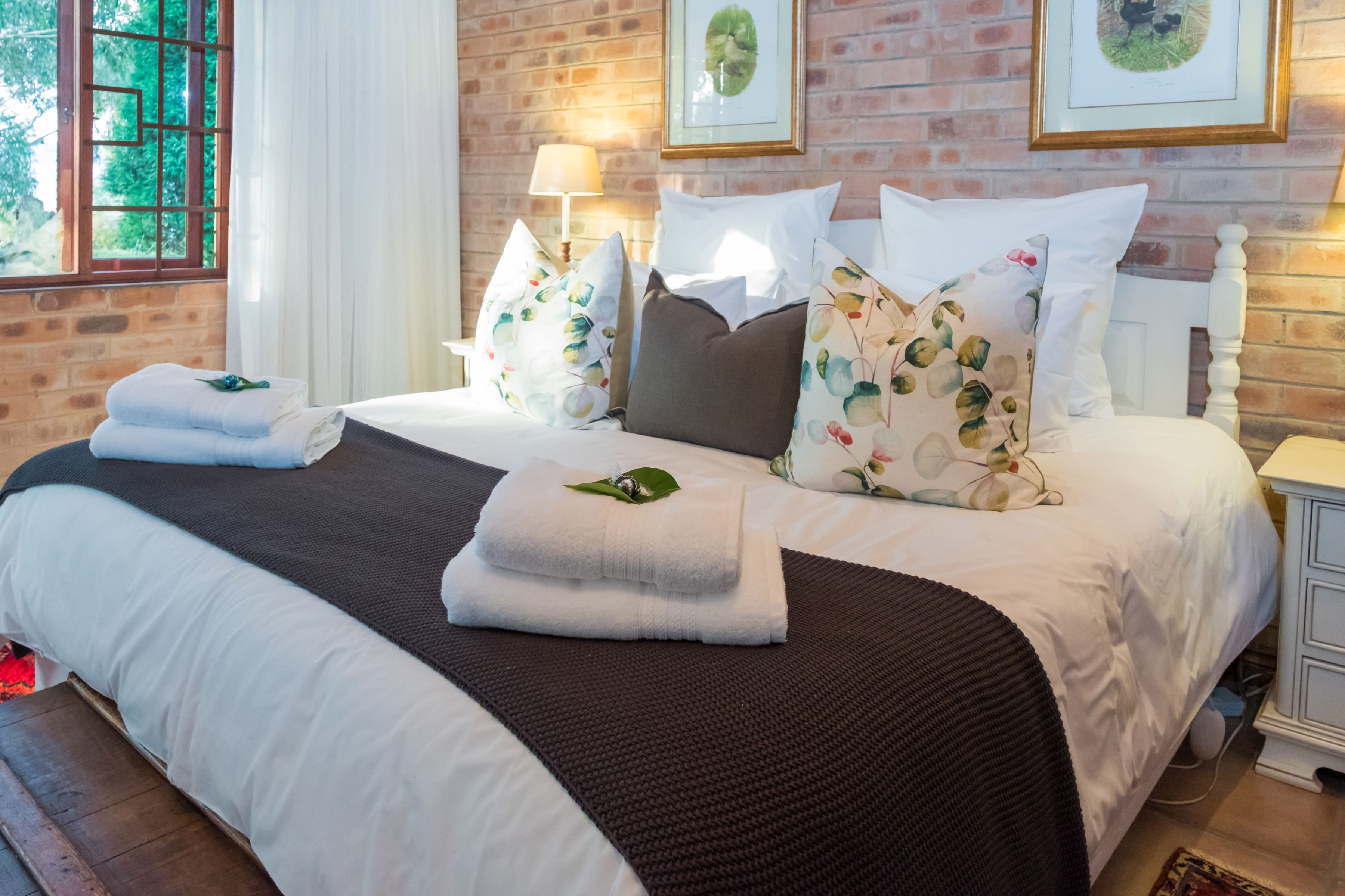 Spacious 8-seater dining area and cosy lounge with lovely open fireplace. The living area opens onto paved patio with Weber braai. There are also lovely lawns and gardens for children to play in close to the cottage